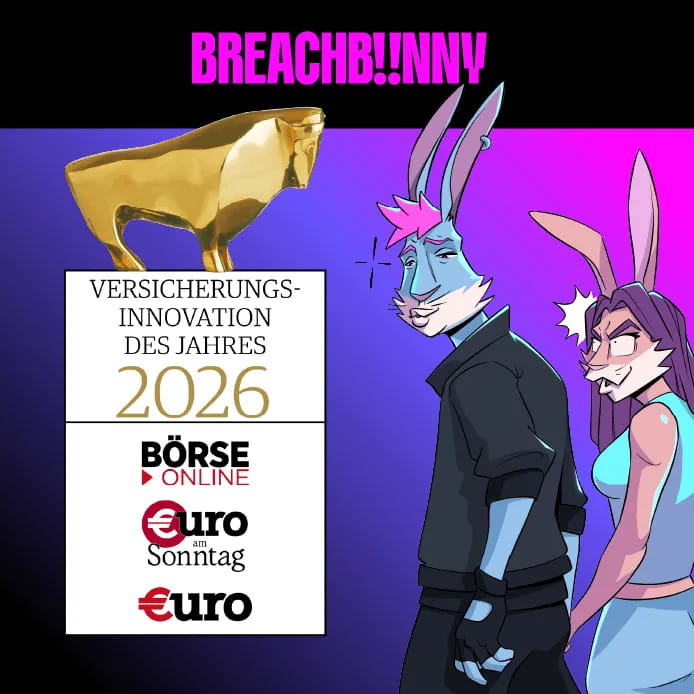 NOCH BIGGER NEWS: Im März 2026, nicht einmal ein halbes Jahr nach unserem Launch, wurde BreachBunny von einem der führenden Medien der Finanzwirtschaft – den Börsenmedien, bekannt durch BÖRSE Online und das €uro Magazin – als "Versicherungsinnovation des Jahres 2026" ausgezeichnet.